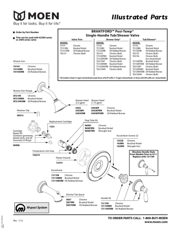 Truly, we also have been noticed that moen shower faucet parts diagram is being one of the most popular issue right now. Hub & single piece lever/elbow assembly 159107 chrome 159107p polished brass 159107bn brushed nickel. This is for a positemp valve system, and it utilizes a 1222 cartridge. If a part is broken or has come off the faucet, there may be a component number located on that part. Fits moen chateau single handle shower with teardrop handle kit includes: